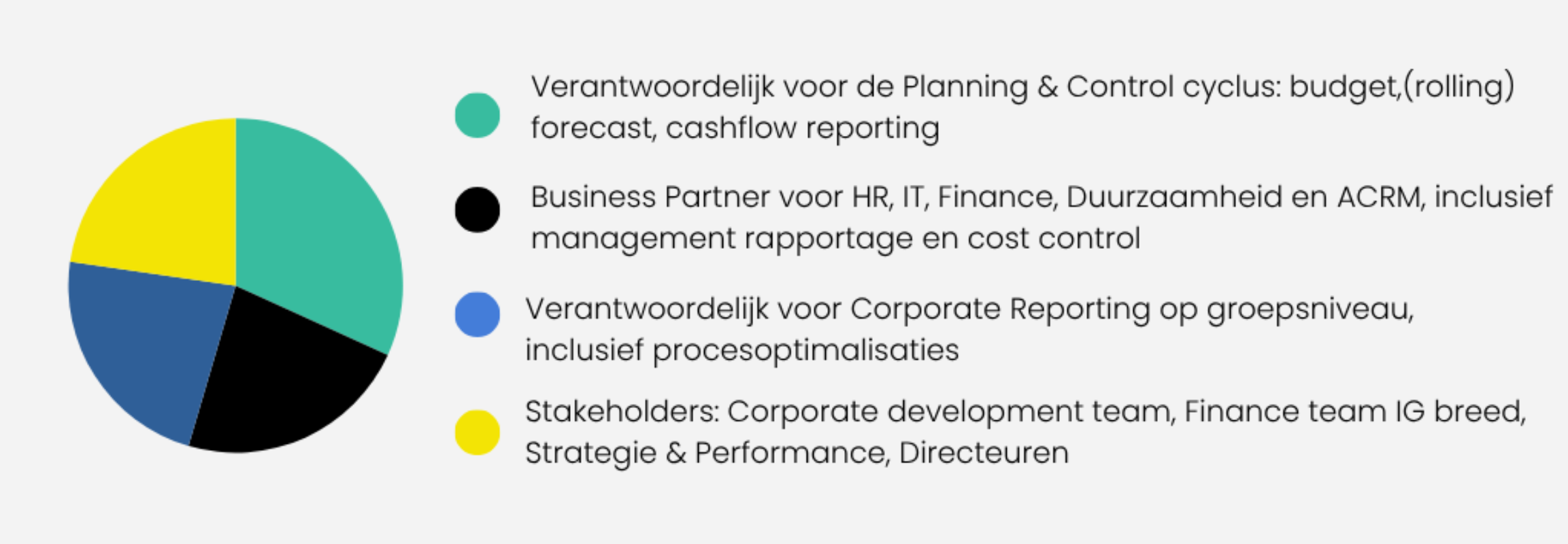 Je draagt bij aan het verbeteren en uitvoeren van de Planning & Control-cyclus. Je onderbouwt het operationeel plan, vertaalt dit naar een robuust budget en stelt nauwkeurige (rolling) forecasts op. Je levert managementrapportages aan en bespreekt deze met de betreffende directeuren van HR, IT, Duurzaamheid, Finance en ACRM. Op basis van grondige analyses signaleer je verbetermogelijkheden en daag je de organisatie uit om continu beter te presteren. Daarnaast speel je een sleutelrol in het ontwikkelen, monitoren en verbeteren van strategische KPI’s, waaronder NPS, eNPS, cashflow, EBITDA en advies- en projectkosten. Deze KPI’s ondersteunen scherpe besluitvorming en prestatiesturing.