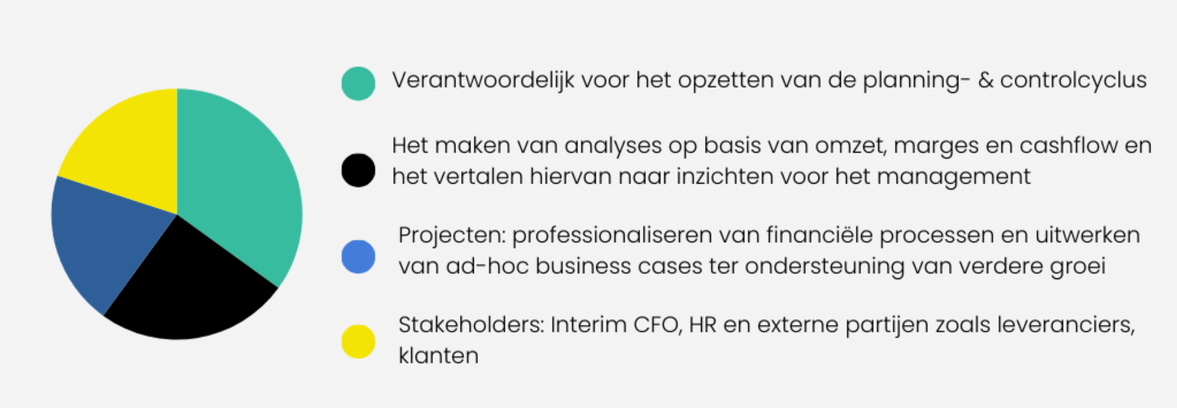 Wij zijn op zoek naar een ambitieuze en talentvolle Controller. Je hebt een pragmatische manier van werken en zorgt ervoor dat de cijfers kloppen, maar onderzoekt altijd of processen beter, slimmer en efficiënter kunnen. Je vindt het uitdagend waar mogelijk tooling voor je te laten werken. Alles wat je repeterend aan het doen bent, wil je het liefst zo snel mogelijk automatiseren, binnen elk aspect van finance. Je zorgt voor verbinding, vertrouwen en wederzijds begrip met de business; naast je voorliefde voor cijfers haal je namelijk ook veel energie uit samenwerking met anderen.