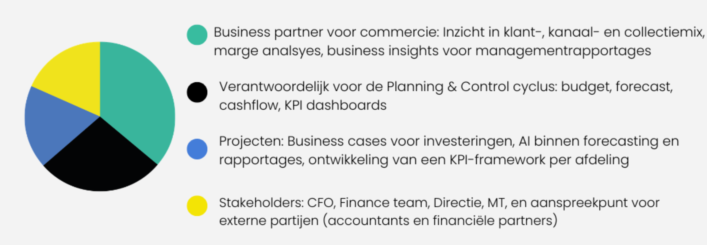 In deze functie rapporteer je direct aan de CFO en werk je nauw samen met het Finance team. Als Finance Business Partner voor de commerciële organisatie vertaal je financiële data naar strategische inzichten die bijdragen aan de verdere groei van Studio Anneloes. Je levert scherpe analyses en heldere KPI-rapportages die het management ondersteunen bij beslissingen over onder anderen pricing, kanaalstrategie, collecties en investeringen.