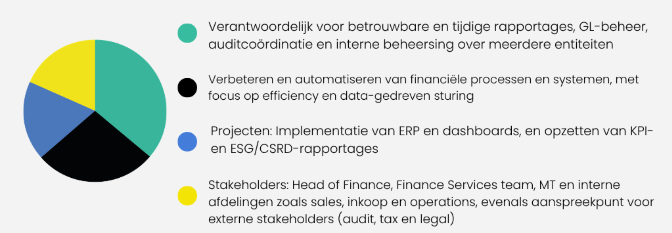Als Financial Control & Accounting Specialist speel je daarin een belangrijke rol. Je werkt nauw samen met de Head of Finance en het Finance Services team en bent een inhoudelijke sparringpartner op het gebied van accounting en reporting. Je zorgt dat cijfers niet alleen kloppen, maar ook logisch zijn opgebouwd en goed te volgen zijn voor anderen.